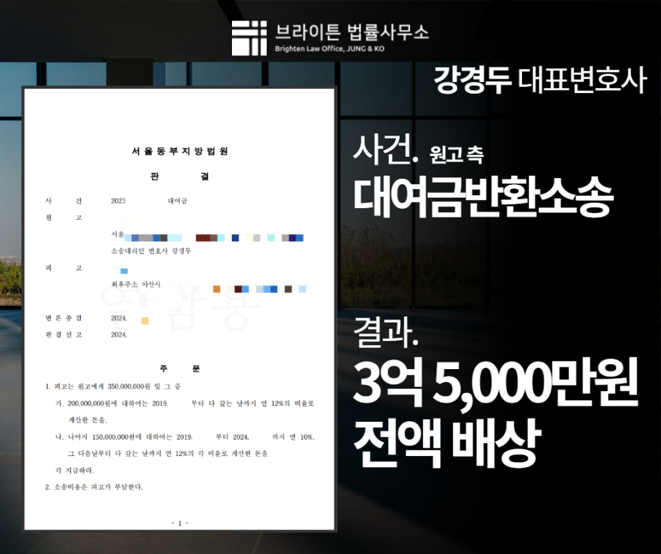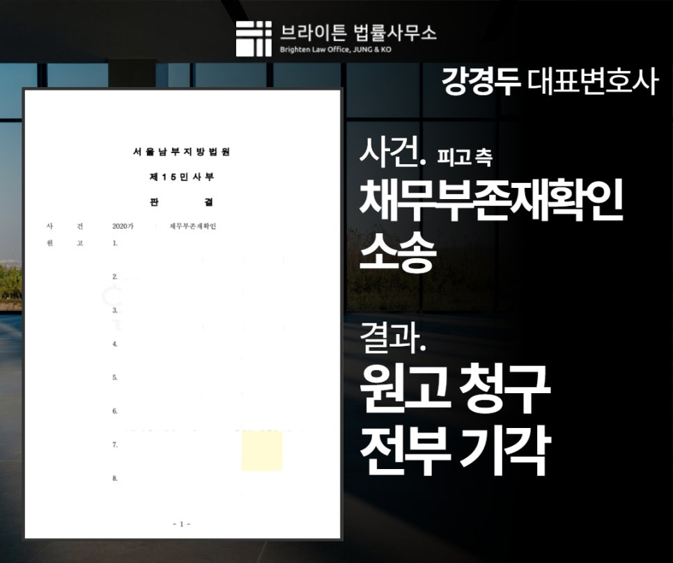 신탁사 대리, 채무부존재소송 전액 기각시킨 해결사례 *의뢰인의 개인정보보호를 위해 각색되었음을