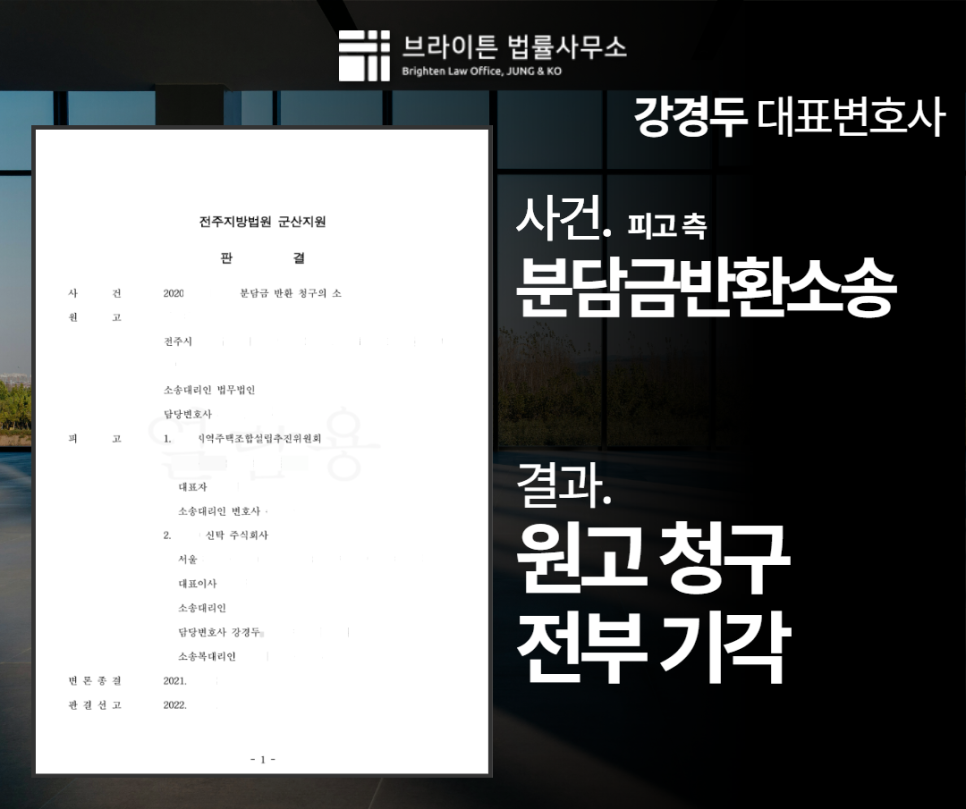 신탁사 대리, 분단금 반환 전액 청구 기각시킨 해결사례 *의뢰인의 개인정보보호를