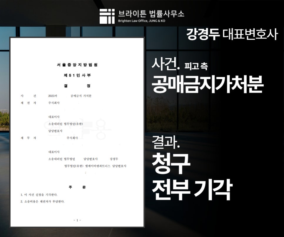 신탁사 대리, 공매금지가처분 청구 기각시킨 해결사례 *의뢰인의 개인정보보호를 위해 각색되었음을