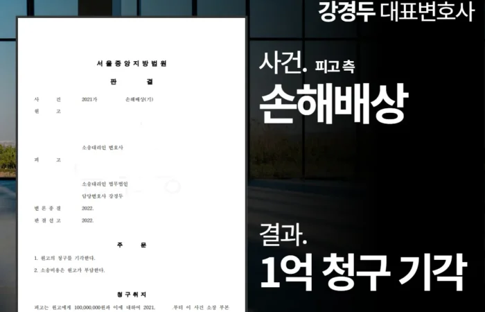 Author kdkangweb Published on: 2025-10-21 민사전문변호사, 손해배상 1억 원 기각시킨 성공사례 주위에서 발생하는 문제로 인해 자신이 정신적, 육체적, 금전적으로 피해를 입었다면, 이때는 ‘손해배상청구소송’을 통해 피해에 대한 배상을 받아내야 하는 것은 당연한