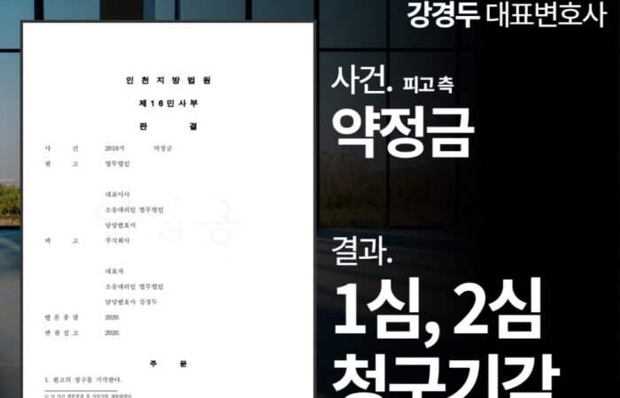 Author kdkangweb Published on: 2025-11-14 민사전문변호사, 약정금 5,000만원 배척시킨 성공사례 민사전문변호사, 약정금 5,000만원 배척시킨 해결사례 *의뢰인의 개인정보보호를 위해 각색되었음을 알려드립니다. << 사실관계 >> 의뢰인은 아파트입주자대표의 회장직을 맡고 있는