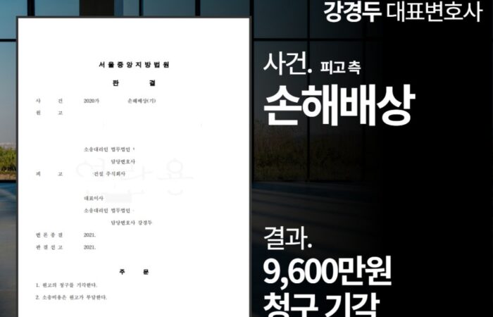 Author kdkangweb Published on: 2025-11-14 민사전문변호사, 손해배상 9,300만원 기각한 성공사례 민사전문변호사, 손해배상 9,300만원 기각한 해결사례 *의뢰인의 개인정보보호를 위해 각색되었음을 알려드립니다. << 사실관계 >> 저를 찾아왔던 의뢰인은 OO건설에서 종사하고