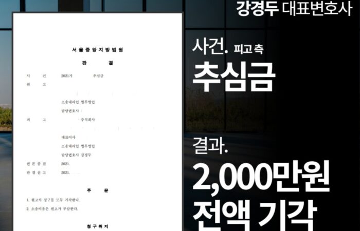 Author kdkangweb Published on: 2025-11-14 민사전문변호사, 추심금 전액 기각시킨 성공사례 민사전문변호사, 추심금 전액 기각시킨 해결사례 *의뢰인의 개인정보보호를 위해 각색되었음을 알려드립니다. << 사실관계 >> A씨는 당시 지역주택조합에 2,000만 원의