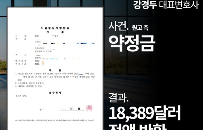 Author kdkangweb Published on: 2025-11-14 민사전문변호사, 약정금 2억원 전액 기각시킨 성공사례 민사전문변호사, 약정금 2억원 전액 기각시킨 해결사례 *의뢰인의 개인정보보호를 위해 각색되었음을 알려드립니다. << 사실관계 >> 의뢰인은 법적 분쟁이 발생하여,