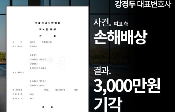 Author kdkangweb Published on: 2025-11-14 손해배상전문변호사, 3,000만원 기각시킨 성공사례 손해배상전문변호사, 3,000만원 기각시킨 해결사례 *의뢰인의 개인정보보호를 위해 각색되었음을 알려드립니다. << 사실관계 >> 의뢰인은 블로그를 운영하는 사람이었으며, 당시 A씨와