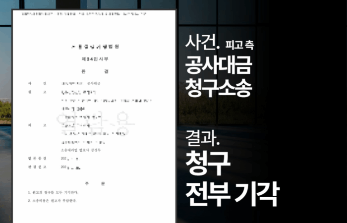 Author kdkangweb Published on: 2025-11-19 공사대금 청구 기각, ‘청구 전부 기각’ 판결받은 사례 공사대금청구소송 → 결과 : ‘청구 전부 기각’ 판결 *의뢰인의 개인정보보호를 위해 각색되었음을 알려드립니다. << 사실 관계 >> 원고는
