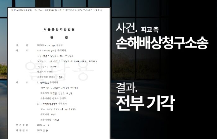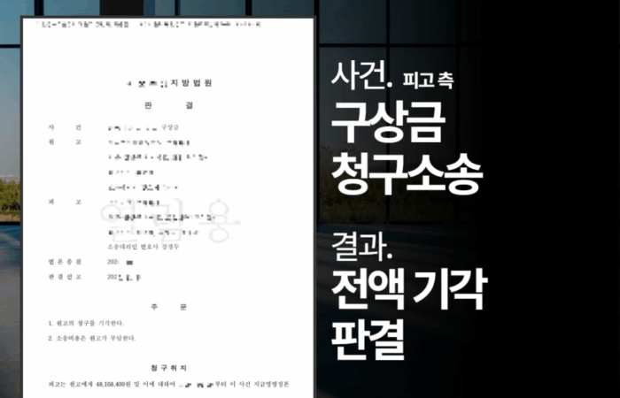 Author kdkangweb Published on: 2025-11-19 구상금청구소송변호사, ‘전액 기각’ 이끌어낸 성공사례 구상금청구소송 → 결과 : ‘전액 기각’ 판결 *의뢰인의 개인정보보호를 위해 각색되었음을 알려드립니다. << 사실 관계 >> 건설사 A사는