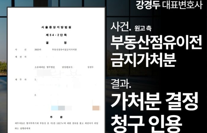 Author kdkangweb Published on: 2025-11-14 부동산전문변호사, 점유이전금지가처분 결정받은 성공사례 부동산전문변호사, 점유이전금지가처분 결정받은 해결사례 *의뢰인의 개인정보보호를 위해 각색되었음을 알려드립니다. 의뢰인은 A씨, B씨와 2021년 3월부터 2023년 3월까지 서울에 있는 건물에